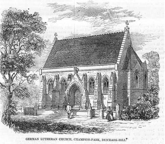 On Windsor Road for many years was a little church that existed to serve the Camberwell German community. Camberwell in the 1850’s had become home to a growing number of Germans mostly due to southwards migration from inner city central London for cleaner and greener areas of south London. They met for worship at Dr Crofts school from January 1854 and resolved according to WH Blanch to build a church. Funds were raised by private subscription, and the the Windsor Road Church was opened on December 16th, 1855. The church seated up to 300 persons and was funded entirely by subscriptions. The land was purchased from Mr Claude de Crespigny whose estate went from Champion Park north to Love Walk.