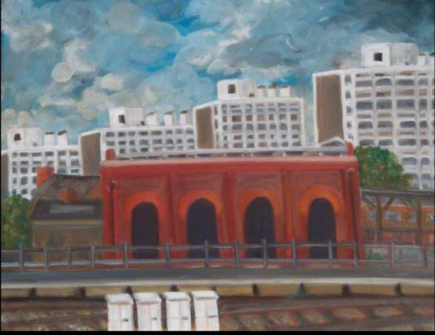 Windy Days at Loughborough Junction by Wendy Sullivan. Painted 1990.