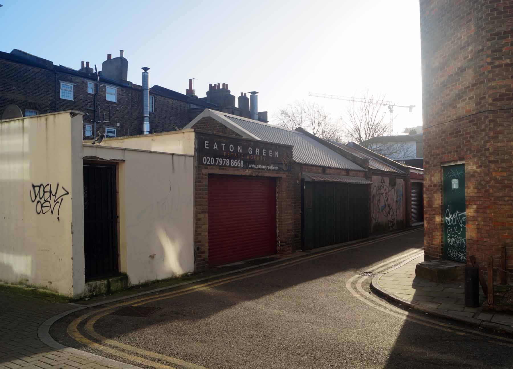 Garages running to the north off Coldharbour Passage.