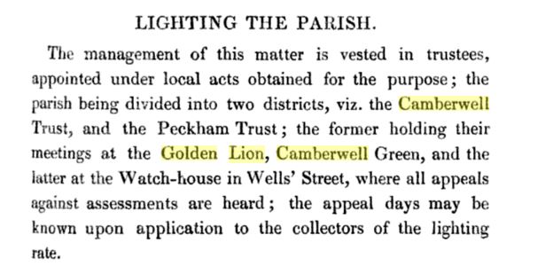 In 1819, the Golden Lion was used as a temporary court to try urgent cases arising from misbehaviour at Camberwell Fair according to the following report from the Morning Advertiser, 20 August 1819.