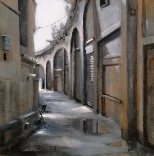 Two paintings by Alan Harris, both have the same subject. The first is called The Cat Alley, and features the walkway between Barrington Road and Ridgeway Road. Sometimes known as Orphan Alley, as it was next to The Brixton Orphanage for Fatherless Girls which closed in 1936.